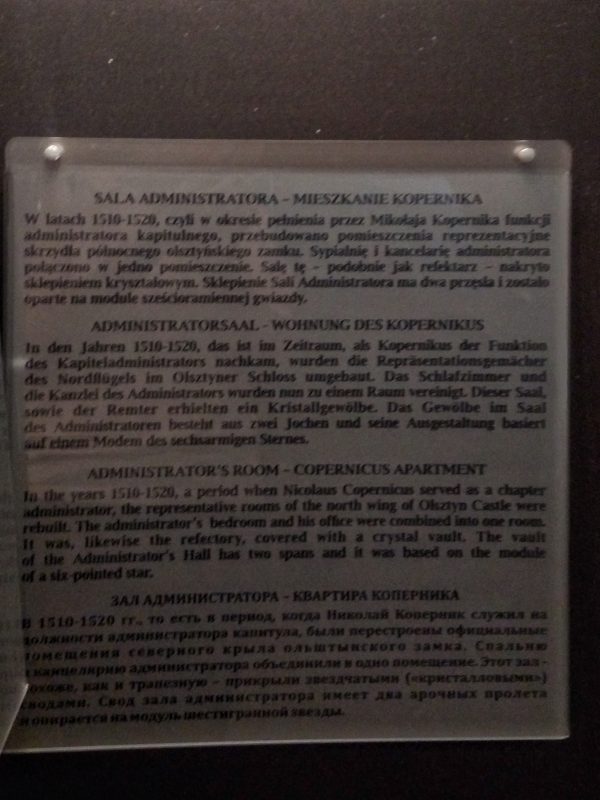 Sala ta ponadto jest ciekawa z jeszcze jednego względu. Mieszkał tu bowiem Mikołaj Kopernik. Toteż zobaczymy tu wiele pamiątek z nim związanych: rękopisy, portrety, informacje biograficzne…