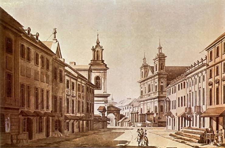 Warto zwrócić uwagę na niewielki obraz autorstwa Zygmunta Vogla z 1785 roku, na którym Brama Nowomiejska widoczna jest w głębi, za kościołami.