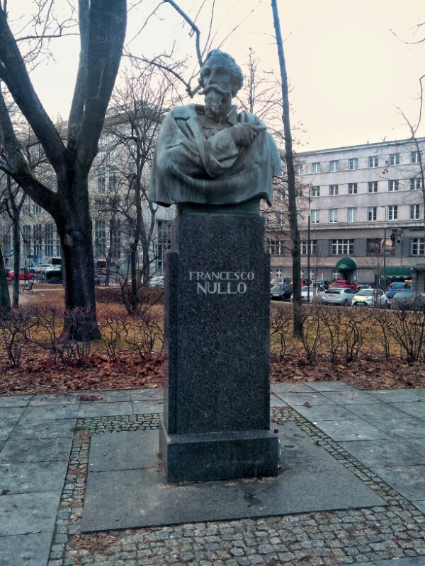 Nieopodal Sejmu, u zbiegu ulic Francesco Nullo i Frascati, stoi popiersie patrona jednej z tych ulic.