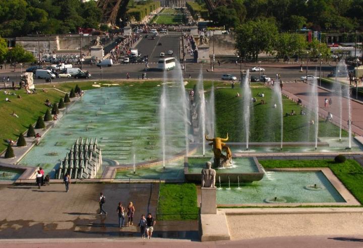 Gdy jednak mostem Iena przejdziemy na drugą stronę Sekwany, po kilkunastu minutach dojdziemy do Pałacu Chaillot, obiektu również dosyć pokaźnego w swych rozmiarach, o ciekawym, łukowatym kształcie, widocznego zarówno spod wieży jak i z kolejnych platform widokowych. To kolejny budynek wybudowany z okazji wystawy światowej, w roku 1937, na miejscu niedokończonego przez Napoleona pałacu Trocadero. Obecnie służy jako obiekt muzealny i teatralny. Z tarasów przed pałacem, od strony Sekwany, roztacza się rozległa panorama. Stąd też najpiękniej prezentuje się Wieża Eiffle’a w perspektywie z Sekwaną i Polami Marsowymi. Dodatkową nagrodą za kilometrowy spacer będzie też możliwość obejrzenia ogrodów Chaillot z pięknymi fontannami.