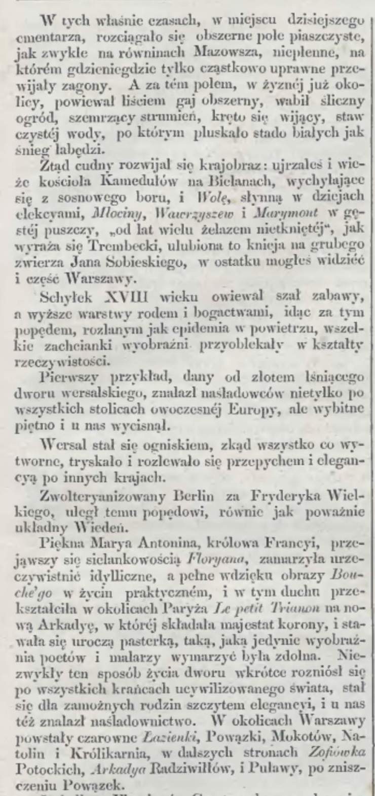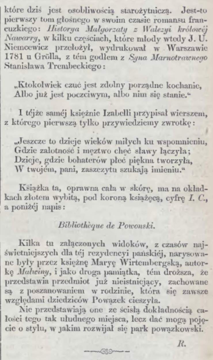Na szczęście nieco rycin z powązkowskiej rezydencji zachowało się we dawnych wydaniach czasopisma „Kłosy”. Wcześniejsze numery tego pisma nie są zbyt łatwo dostępne, tym bardziej dziękuję Panu Andrzejowi Kontkiewiczowi za udostępnienie rycin i skanów tekstu „zabytkowego” już artykułu. Grafiki, księżnej Marii Wirtemberskiej, same w sobie też są już zabytkami.