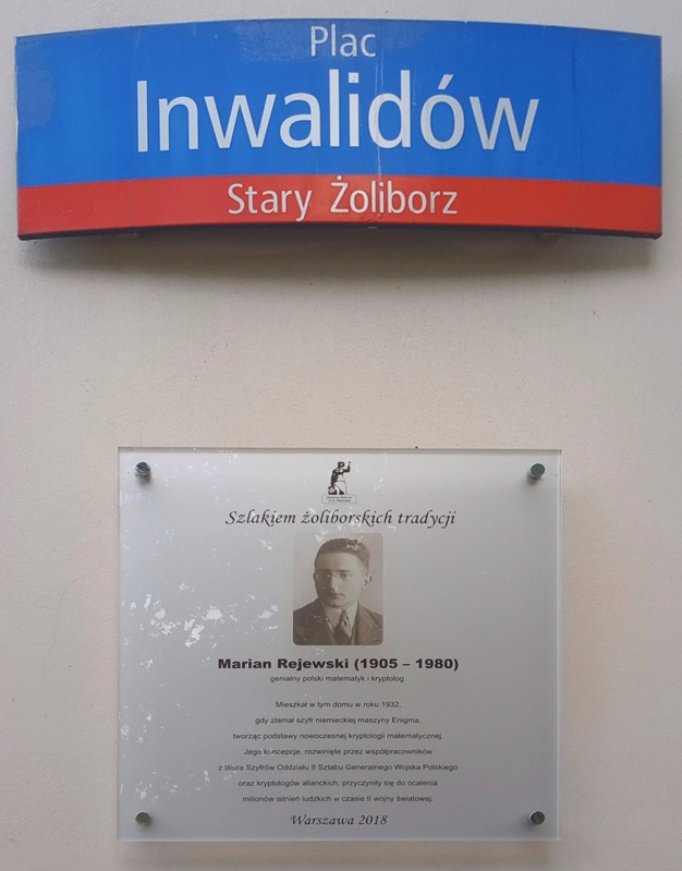 Rejewski mimo młodego wieku już na początku lat trzydziestych był wybitnym kryptologiem oraz prekursorem nowoczesnych metod łamania szyfrów. Wraz z Jerzym Różyckim i Henrykiem Zygalskim w 1932 roku złamał kod niemieckiej maszyny szyfrującej „Enigma”. Mieszkał wtedy krótko w Warszawie, jako oficer – oczywiście na Żoliborzu Oficerskim, przy ul. Mickiewicza 20. Fakt ten upamiętniono niedawno tablicą na budynku, a fotografia na niej umieszczona prawdopodobnie została zrobiona właśnie w roku 1932.