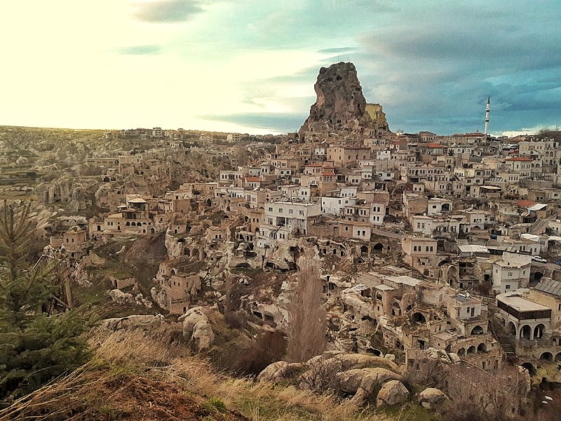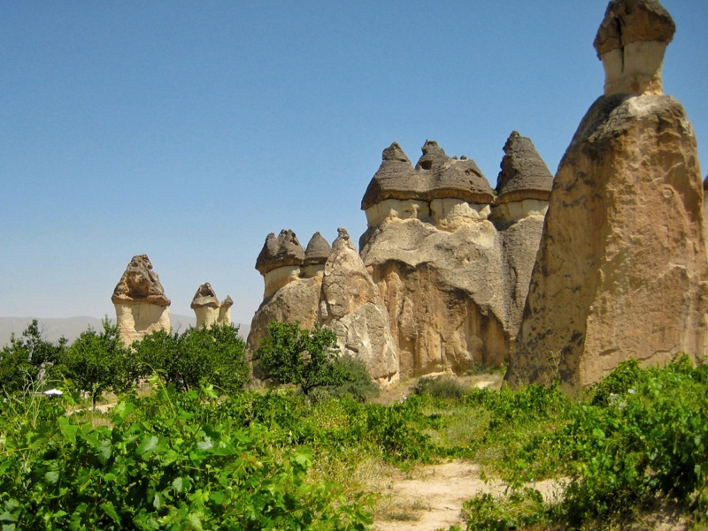 Kapadocja – tej nazwy próżno by szukać na mapach. Cóż znaczy? „Kraina pięknych koni”, które niegdyś całymi stadami galopowały po anatolijskich stepach. Ale dla dzisiejszego turysty to kraina cudownych, nieziemskich krajobrazów. Widoki Kapadocji w oryginalności swych kształtów nie mają sobie równych i na zawsze zapadają w pamięć. Nieopodal skalnej twierdzy Učhisar, dziurawej jak ser szwajcarski, w Paşabahče rosną gigantyczne kamienne grzyby i parasole, w Zelve z czerwonawych skał wyrasta ogród zoologiczny: piaskowe wielbłądy, małpy, żaby i ptaki.