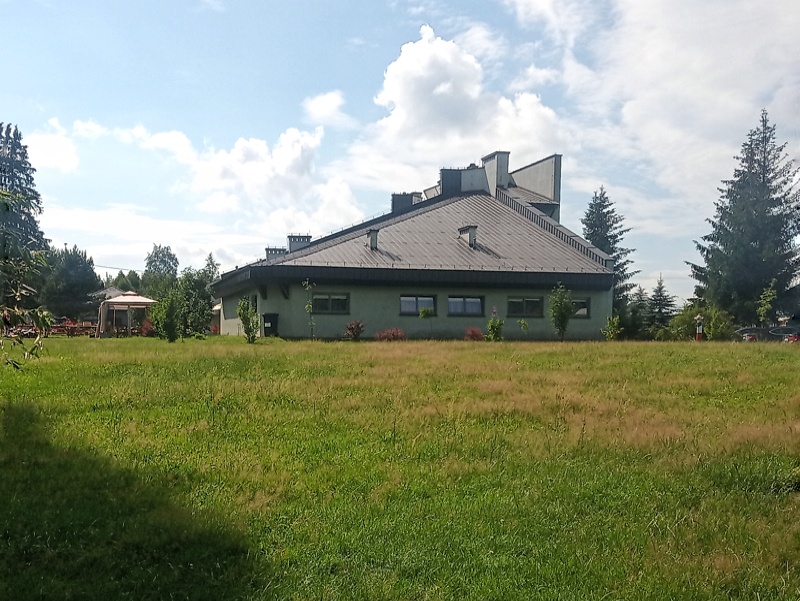 Po sąsiedzku stoi drugi budynek, już całkiem współczesny – Centrum Edukacji i Kultury „Szklany Dom”. To od powstania tego obiektu rozpoczęło się działanie „Żeromszczyzny”, jak nazywany jest cały ten kompleks. „Szklany Dom” rozpoczął swoje funkcjonowanie w roku 2008. Wbrew nazwie wcale nie jest szklany, ale chyba nikt, kto choć trochę zetknął się z twórczością Żeromskiego (teoretycznie wszyscy mieliśmy okazję 😉) nie ma wątpliwości do czego ta nazwa nawiązuje.* Organizowane są tu wystawy, spotkania, prelekcje, koncerty, lekcje muzealne, warsztaty, przy ciepłej pogodzie także na zewnątrz w parku. Tematyka wydarzeń wcale niekoniecznie związane jest z Żeromskim, a nawet raczej wręcz przeciwnie. Centrum stawia sobie za zadanie promowanie kultury współczesnej . Jest tu też sklepik z pamiątkami, gdzie można zakupić wydawnictwa i mapy dotyczące Ziemi Świętokrzyskiej, a także publikacje i gadżety inspirowane Ciekotami, Żeromskim i jego twórczością: magnesy, torby, przypinki i Krówki Ciekotki z cytatami z dzieł Żeromskiego oraz oczywiście wydania najpopularniejszych utworów pisarza, jak też opracowania jego twórczości i biografii. I jest tu jeszcze jedno pomieszczenie, bardzo istotne dla turystów: ogólnodostępne toalety. 😉