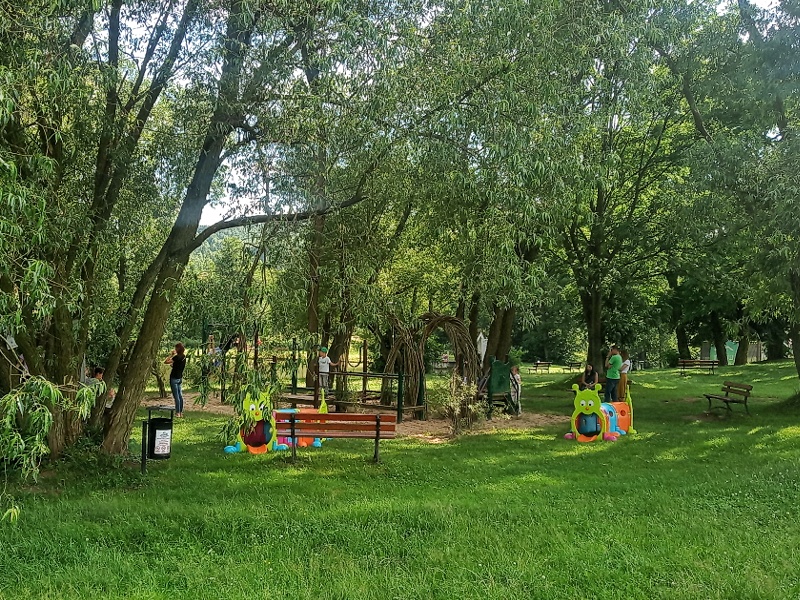 W parku pomyślano o dekoracjach, ławeczkach, placu zabaw, palenisku na ognisko i o stworzeniu miłej atmosfery. Po uzgodnieniu z dyrekcją można tu urządzić piknik, zabawę urodzinową dla dzieci itp.