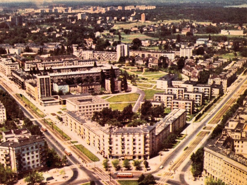 Plac figurował jako jeden z centralnych i zwrotnych punktów szerszego założenia urbanistycznego. Wpisywał się w projekt osi widokowej, która zaczynać miała się u początku ulicy Krechowieckiej, przy Domu Kultury, tam gdzie obecnie Teatr Komedia, a kończyć aż nad Wisłą, na Kępie Potockiej. Główną aleję – ulicę Krechowiecką – miały przecinać łukowate uliczki. Plac Lelewela, z którego ulice wychodziły promieniście, miał być jednym z dwóch amfiteatralnych punktów panoramicznych na tej, a raczej na tych osiach widokowych. Bowiem właśnie na Placu Lelewela następował zwrot prawie o 90 stopni i linia widokowa wyznaczona przez ulicę Krechowiecką rozdwajała się. Na wprost biegła ulicą Modrzejewskiej i kończyła się hen, na obfitującym w drzewa horyzoncie (który później zajęły kominy elektrociepłowni Żerań i bloki Marymontu lat siedemdziesiątych). Pociągnięcie tej linii w tym kierunku nie bardzo jednak było możliwe, bo dalej istniała już zabudowa, pochodząca jeszcze z czasów osady Michała Grossego. O Grossowie możecie poczytać w oddzielnym artykule ⏩ GROSSÓW – MARYMONCKIE LETNISKO. Z boku Placu Lelewela nastąpiło rozwidlenie linii widokowej, drugą jej oś tworzyć miały odchodzące w prawo w ulice Żółkowskich i Bohomolca. Ta linia biegła aż do Wisły, do fragmentu wiślanego tarasu zwanego wówczas Kępą Sopocką (obecnie cały rejon nosi jedną nazwę – Kępa Potocka). Tam powstać miał Park Moniuszki, z półkolistymi alejkami, tworzącymi amfiteatralne zamknięcie całego układu urbanistycznego. Wiele lat później w miejscu planowanego parku powstał kompleks ogródków działkowych, które nadal tam istnieją.