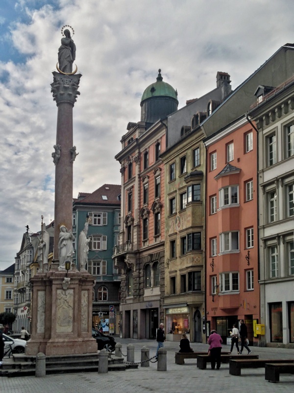 Maria-Theresien-Strasse ciągnie się około kilometra pośród najpiękniejszych kamienic Innsbrucku i jest najpopularniejszym traktem spacerowym, ulubionym przez turystów. Toteż nic dziwnego, że ulokowały się tu kafejki, restauracje i sklepy.