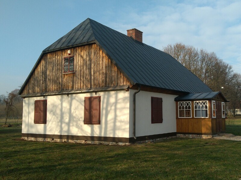 Gdy już obejrzymy dokładnie dwa większe dworki warto przejść jeszcze kawałek w drugim kierunku, obok zabudowań gospodarczych do trzeciego budynku na terenie pięknego parku, w obrębie którego znajduje się Muzeum. Tam, nieopodal niewielkiego stawu i potoku usytuowano tzw. drobnoszlachecki, przeniesiony z pobliskiej wsi Mężenin.