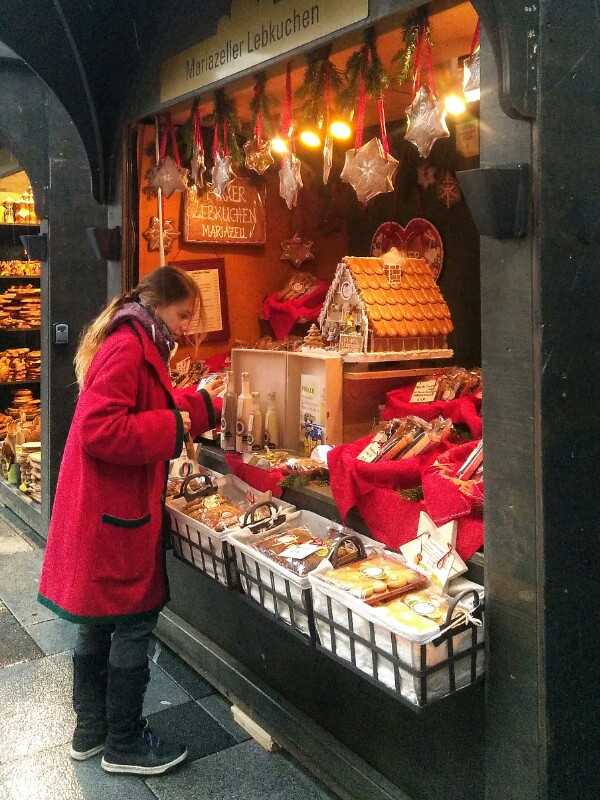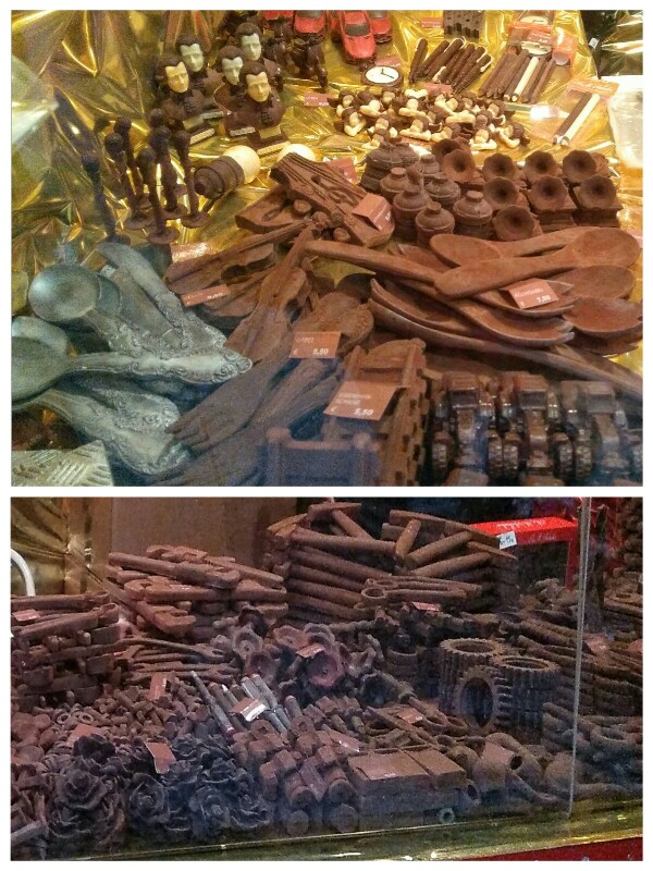 A ponadto obowiązkowo świąteczne smakołyki, słodkości, naturalnie również z różnych regionów Austrii. Przyciągało oczy czekoladowe stoisko „rzemieślnicze”, gdzie można było zakupić nie tylko czekoladowe łyżki i widelce, ale nawet śrubki i obcęgi.🙂