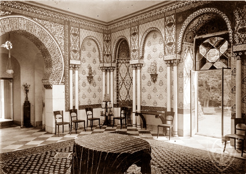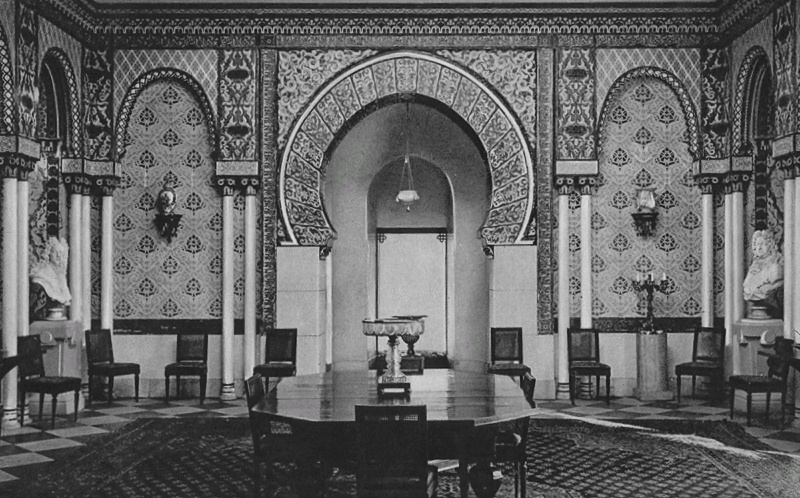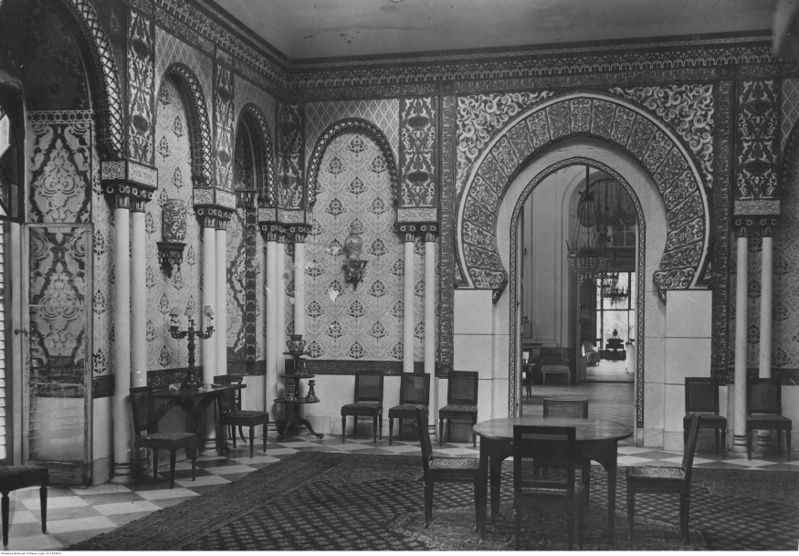 Niestety, nie udało mi się (jak dotąd) znaleźć ilustracji, które przedstawiają wygląd sali jako ogrodu zimowego z czasów Poniatowskich. Popatrzmy więc raz jeszcze na stylizację mauretańską.