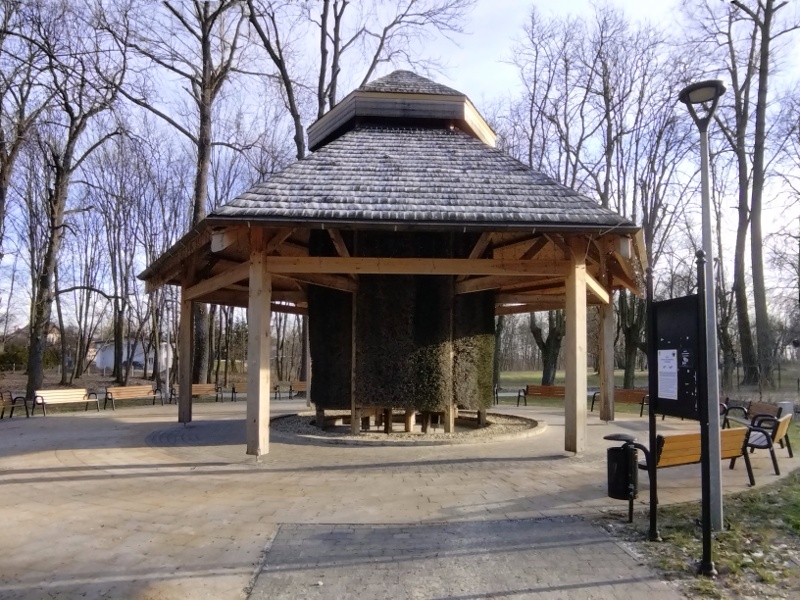 W parku będziemy też mieć okazję na „chwilę dla zdrowia”, o ile na początku marca będzie już działać niewielka, ogólnodostępna tężnia solankowa, którą utworzono tam w 2019 roku.