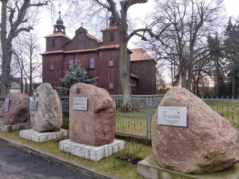 Przyglądając się kościołowi z zewnątrz warto zerknąć też na rząd głazów narzutowych stojących przed ogrodzeniem.