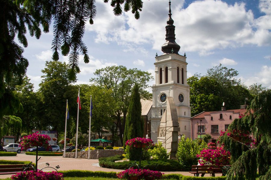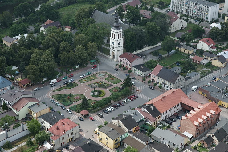 Centralnym punktem tego miasta jest czworoboczny Rynek, zamknięty z trzech stron XIX wiecznymi kamieniczkami, a z czwartej strony parkiem. Nad całością góruje wolnostojąca, neobarokowa wieża z zegarem z 1901 r., usytuowana obok gotyckiej kolegiaty pw. Wniebowzięcia Najświętszej Maryi Panny z 1349 roku.