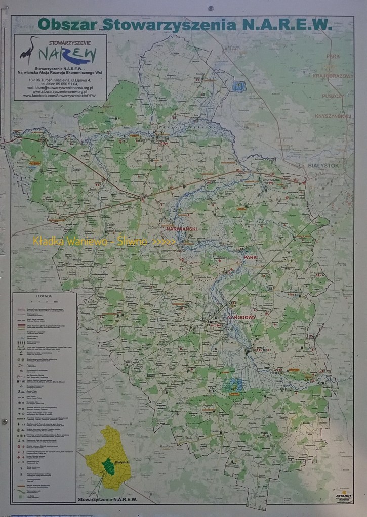 JużJeśli wybierzecie się do Waniewa swoim samochodem, to po dotarciu do Śliwna przyjdzie Wam powtórzyć trasę po kładce powtórnie, z powrotem do Waniewa. Nie ma bowiem połączeń lokalnej komunikacji, umożliwiających powrót na parking w Waniewie. Na szczęście nie jest to duża odległość do przejścia. Znacznie więcej mają do pokonania busy turystyczne. Muszą bowiem przejechać na drugą stronę Narwiańskiego Parku, a to ok. 40 km, co widać choćby na mapce zamieszczonej wyżej. Trzeba też uwzględnić, że te 40 km jest do