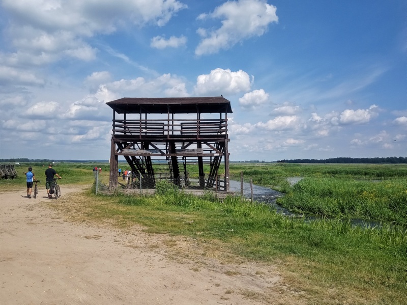 Z ptakami sprawa jest niby oczywista, bo są tam przez cały sezon wegetacyjny. Nie znaczy to jednak wcale, że łatwo je zobaczyć. Podczas spaceru w lipcu spotkaliśmy tylko i aż jedną srokę. 😀 Ale to całkiem zrozumiałe. Aby obserwować ptaki należałoby się wybrać tam z samego rana, najlepiej o świcie. Ewentualnie pod wieczór. Zanim tam dotrzemy, wyruszając rano z Warszawy, robi się już prawie południe – najgorsza pora do ornitologicznych obserwacji. W temacie ptaków ta jedna sroka i tablica informacyjna musiały nam wystarczyć.😉🙂