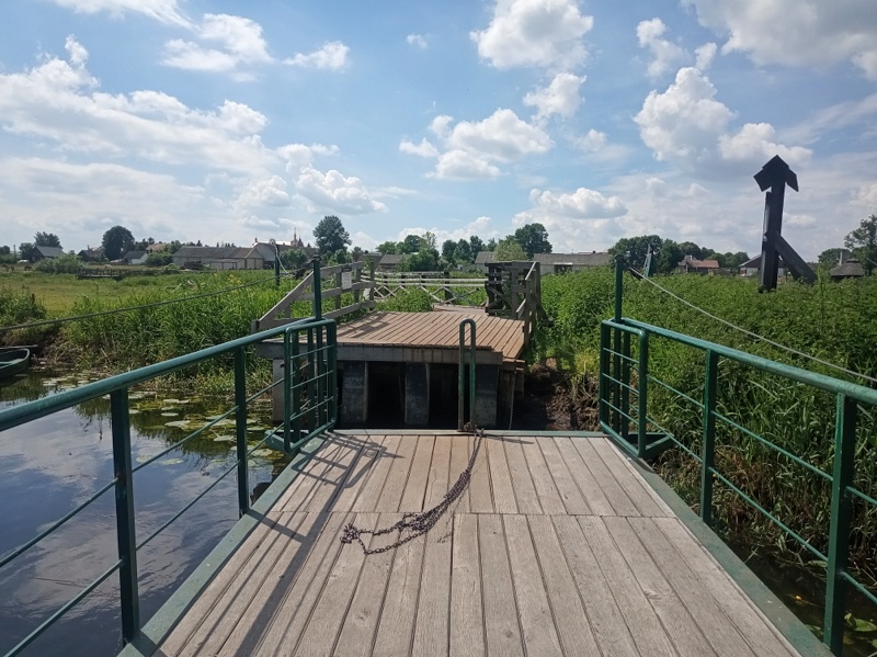 Niestety gmina Waniewo, do której ten odcinek należy, nie poczuwa się do remontu, mimo że budowa kładki została sfinansowana ze środków publicznych. Dojście do pierwszego pływającego pomostu możliwe jest tylko przez łąkę obok wieży, w towarzystwie pasących się krasul i holenderek.😉