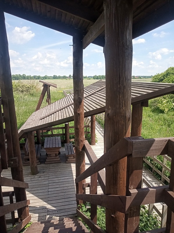 Po drodze spotykamy zejścia z pomostu na bagienne łąki. Nie są one przeznaczone dla turystów i lepiej nie próbować z nich korzystać, by zagłębić się w rozlewiska, bo możemy zostać ofiarą szeptuch i podlaskich duchów bagiennych.😉 Te miejsca mają inne zastosowanie. Tu pobierany jest torf, naturalnie nie w ilościach i celach komercyjnych, lecz badawczych i rekultywacyjnych. Pokłady torfu nigdy zresztą nie miały tu znaczenia przemysłowego, nawet przed utworzeniem Narwiańskiego Parku Narodowego (czyli przed 1 lipca 1996 r.), jako że ich miąższość sięga maksymalnie do 1,5 metra.