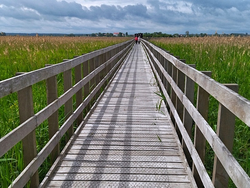 Rozlewiska Narwi poznaliśmy z bardzo bliska, bo z poziomu gruntu i wody. Spacer drewnianym pomostem ułożonym na bagnach, łączący wsie Waniewo i Śliwno to niecałe 2 kilometry, co wcale nie oznacza, że trwa krótko, bo sporo czasu zajmuje podziwianie i fotografowanie widoków i przyrody.