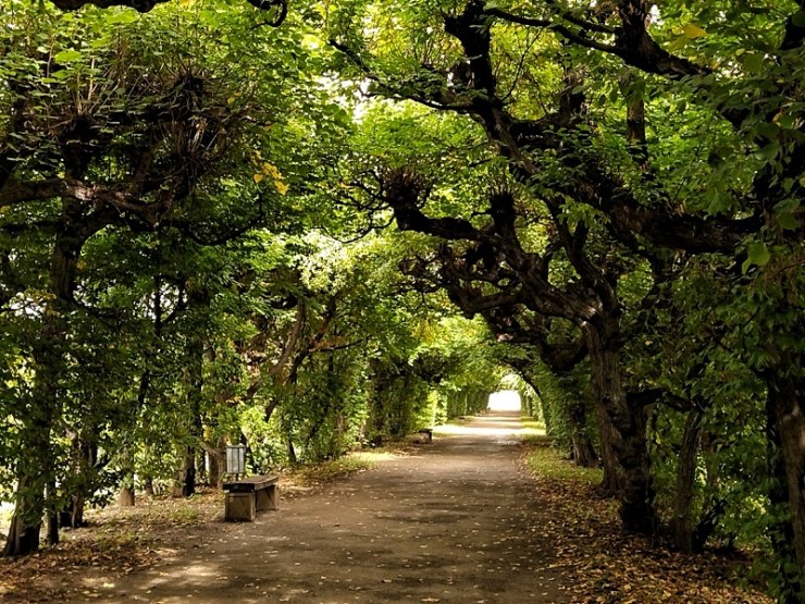 Alejki w Ogrodzie prowadzą szpalerami drzew, tworzącymi zacienione tunele. Foto: Liliana Kołłątaj