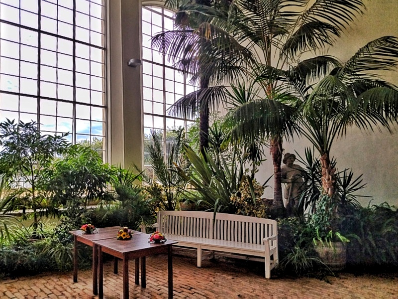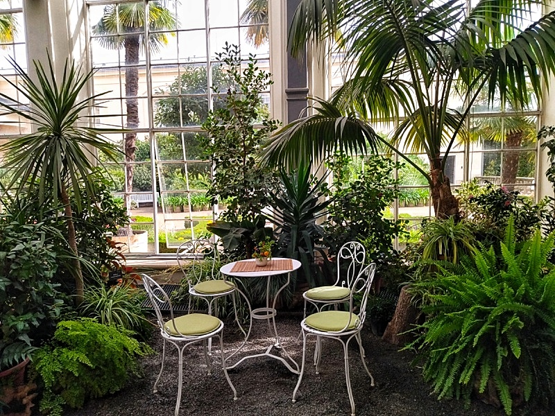 W tym, w którym właśnie jesteśmy, znajduje się niewielka palmiarnia, urządzona tak, że aż prosi się przysiąść i pstrykać foty: w wielu miejscach ławeczki i krzesełka, otulone w zieleń i kwiaty.🙂