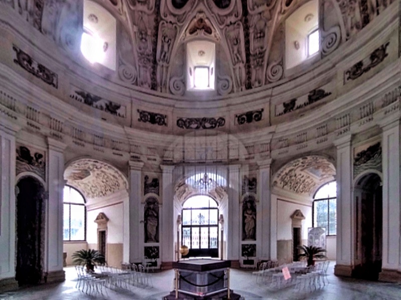 W centralnym punkcie ogrodu znajduje się ośmioboczna rotunda, powstała w 1674 roku. Wewnątrz ozdobiona jest stiukami autorstwa Quirina Castelli oraz Carla Borsy i malowidłami Carpoforo Tencally o tematyce mitologiczno-alegorycznej, przedstawiającymi sceny z „Metamorfoz” Owidiusza.