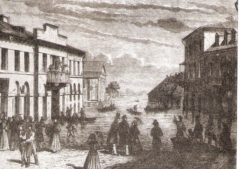 Rysunki pochodzą z czasów powodzi ponad trzydzieści lat później, bo najwyraźniej w 1844 roku nikt nie miał głowy, by w takiej sytuacji zajmować się dokumentowaniem tego wydarzenia.