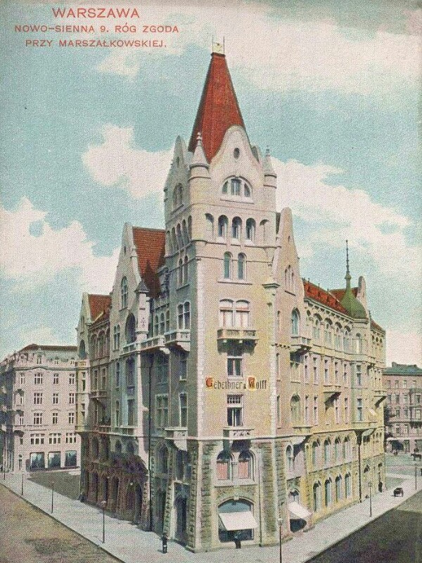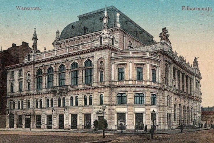 A tak na marginesie… Dorożka z plakatem zaś stoi nie przed przed Filharmonią, a przed gmachem wydawnictwa Gebethner i Wolff, który był zresztą obiektem wyjątkowej urody. O kamienicy, która była siedzibą tej firmy możecie poczytać w oddzielnym artykule: DOM FIRMY GEBETHNER I WOLFF