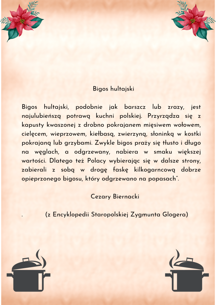 Dzisiejszy przymiotnik ‚staropolski’, często z automatu dodawany do słowa ‚bigos’, zwłaszcza w rozmaitych przepisach, jak łatwo zgadnąć nie był niegdyś wcale przypisany do tego dania. Już prędzej mówiono: bigos myśliwski. Ale najczęściej: bigos hultajski.
