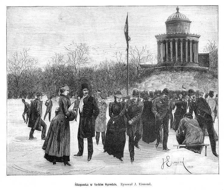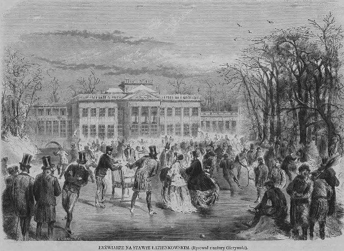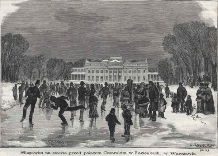 Jedną z bardziej popularnych zimowych rozrywek XIX-wiecznej Warszawy była jazda na łyżwach. Były oczywiście sztuczne, a nawet kryte lodowiska. Najpopularniejsze znajdowało się oczywiście w Dolince Szwajcarskiej, a największe – Palais de Glace – na tyłach Nowego Światu, za pałacem Kossakowskich. W Dolince Szwajcarskiej odbyły się nawet Słowiańskie Mistrzostwa w Łyżwiarstwie Figurowym.