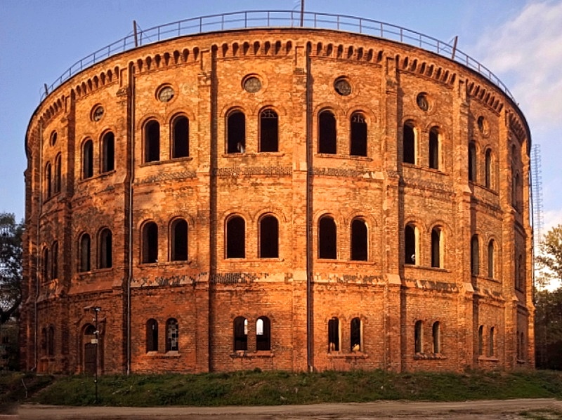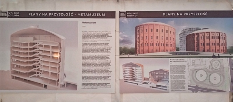 Wrócę jeszcze na chwilę do tematu dawnych zbiorników gazu. Obydwa charakterystyczne obiekty, zwane obecnie Rotundami Wolskimi znajdują się obecnie poza terytoriumi Gazowni. Przez ostatnie lata kilkakrotnie zmieniały właściciela i aktualnie wraz z gruntem, na którym stoją stanowią własność prywatnej spółki – Fundacji Biernackich. W związku z tym wejście na ten teren jest praktycznie niemożliwe. De facto – także ryzykowne, ponieważ budowle są w stanie permanentnego remontu, który jednak posuwa się w żółwim tempie.