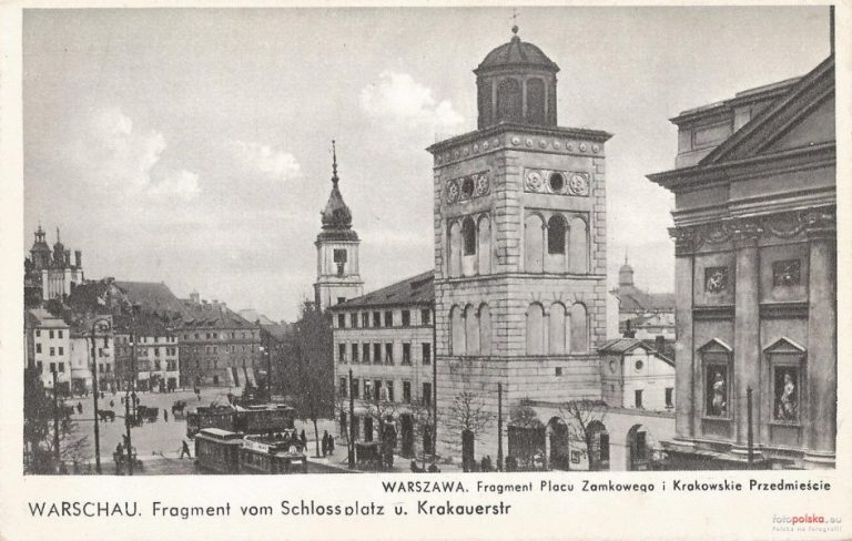 Na zdjęciach sprzed drugiej wojny światowej widać na Placu Zamkowym kamienicę przylegającą od północy do dzwonnicy kościoła św. Anny. Nie trzeba specjalnie sprawdzać, by stwierdzić, że obecnie jej tam nie ma.