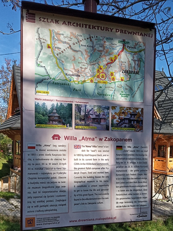 Jednym z takich miejsc jest Willa Atma. To dom, w którym mieszkał Karol Szymanowski. Obecnie znajduje się tam niewielkie, ale całkiem ciekawe muzeum biograficzne kompozytora. Karol Szymanowski uznawany jest za drugiego po Chopinie najwspanialszego kompozytora polskiego. Względy zdrowotne, ale także upodobanie do tej okolicy, spowodowały, że artysta często odwiedzał Zakopane, Podhale i Tatry.