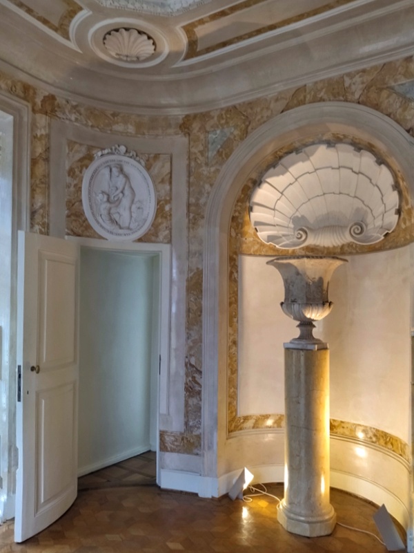 Przechodząc dalej warto zerknąć na płaskorzeźbę umieszczoną na ścianie po lewej stronie w korytarzu za Łazienką. To odlew gipsowy „Tańca Muz” autorstwa Thorvaldsena. Wprawdzie tylko kopia, ale jakże piękna. Chwilę później trafimy do Przedpokoju z kapitalnym zegarem szafowym, a za nim do przepięknego Pokoju Krajobrazowego. Ale to już tematy na kolejną opowieść.😉🙂