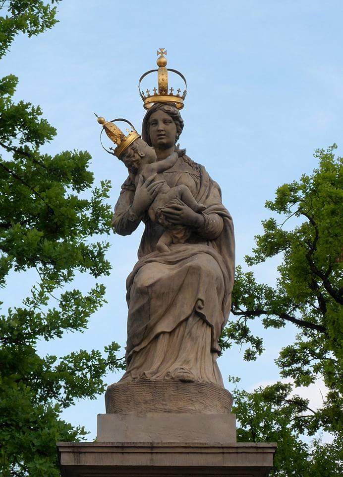 Powyżej: obraz Lucasa Cranacha Starszego przedstawiający Matkę Boską Wspomożenia Wiernych oraz figura Matki Boskiej Pasawskiej z Krakowskiego Przedmieścia w Warszawie. Poniżej: ołtarz katedry w Innsbrucku, zwanej też kościołem św. Jakuba.