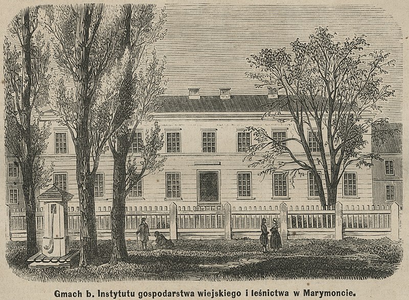 Na początku zajęcia odbywały się w salach pierwszego piętra pałacyku królowej, przystosowanych do celów wykładowych. Na parterze zaś urządzono kaplicę, co w efekcie dało początek późniejszej funkcji sakralnej obiektu. Studentów przybywało i z czasem budowla zaczęła być za ciasna. Na zlecenie rządu Antonio Corazzi zaprojektował nowoczesny kompleksu budynków, które otoczyły pałacyk. Powstały tam nie tylko obiekty uczelniane, ale również mieszkania pracowników i wykładowców instytutu. W 1861 roku w efekcie zarządzenia władz carskich Instytut Agronomiczny na Marymoncie zakończył działalność. W praktyce przeniesiony został do Puław, ale działał tam już pod inną nazwą.