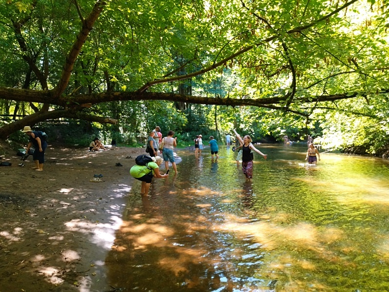 Nieprzekonani do takiej formy przejścia na drugi brzeg, mogą przeprawić się dołem, jest tu całkiem płytko.🙂