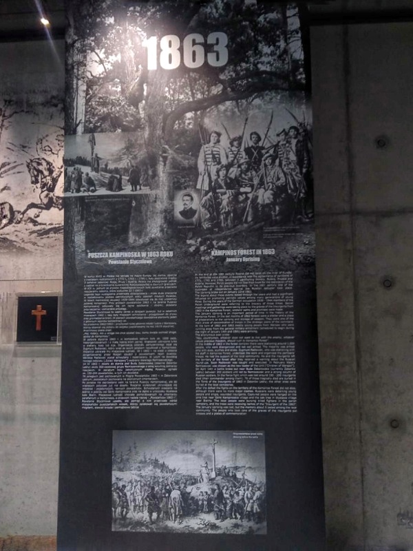 W pawilonie muzealnym znajduje się ekspozycja poświęcona przede wszystkim wydarzeniom z lata 1943 roku, które Niemcy określali kryptonimem Akcja AB oraz etapom ekshumacji ofiar i tworzenia cmentarza. Znajdziemy tam także informacje o walkach na terenie Puszczy w czasach powstania styczniowego oraz wojny obronnej we wrześniu 1939 roku.