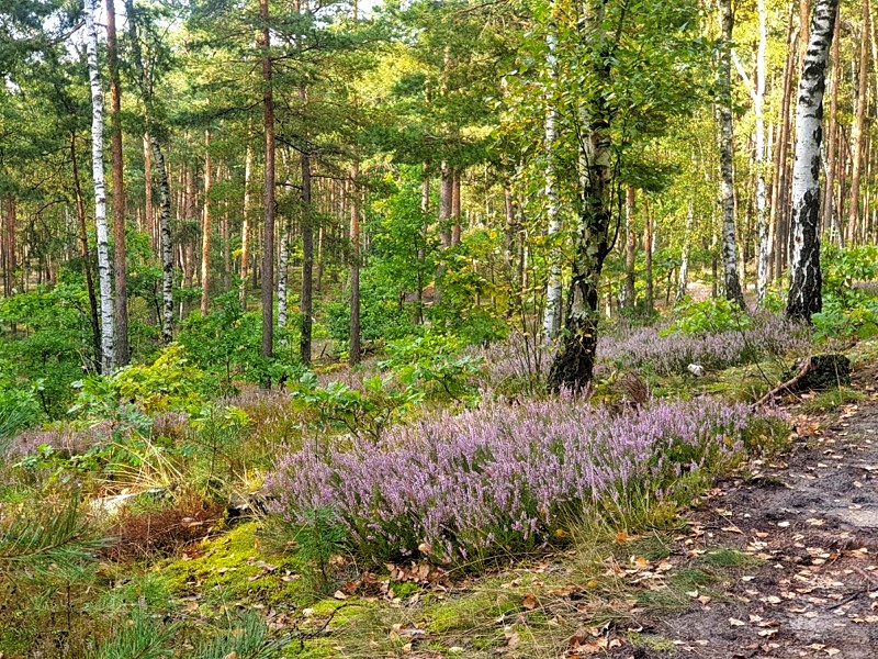 Dotrzemy w rejon Uroczyska Lotne Piachy, gdzie będziemy mogli podziwiać puszczańskie wrzosowisko, jedno z największych w Puszczy Kampinoskiej. Wbrew nazwie, wrzosy zaczynają kwitnąć już w sierpniu i kwitną co najmniej do końca września.