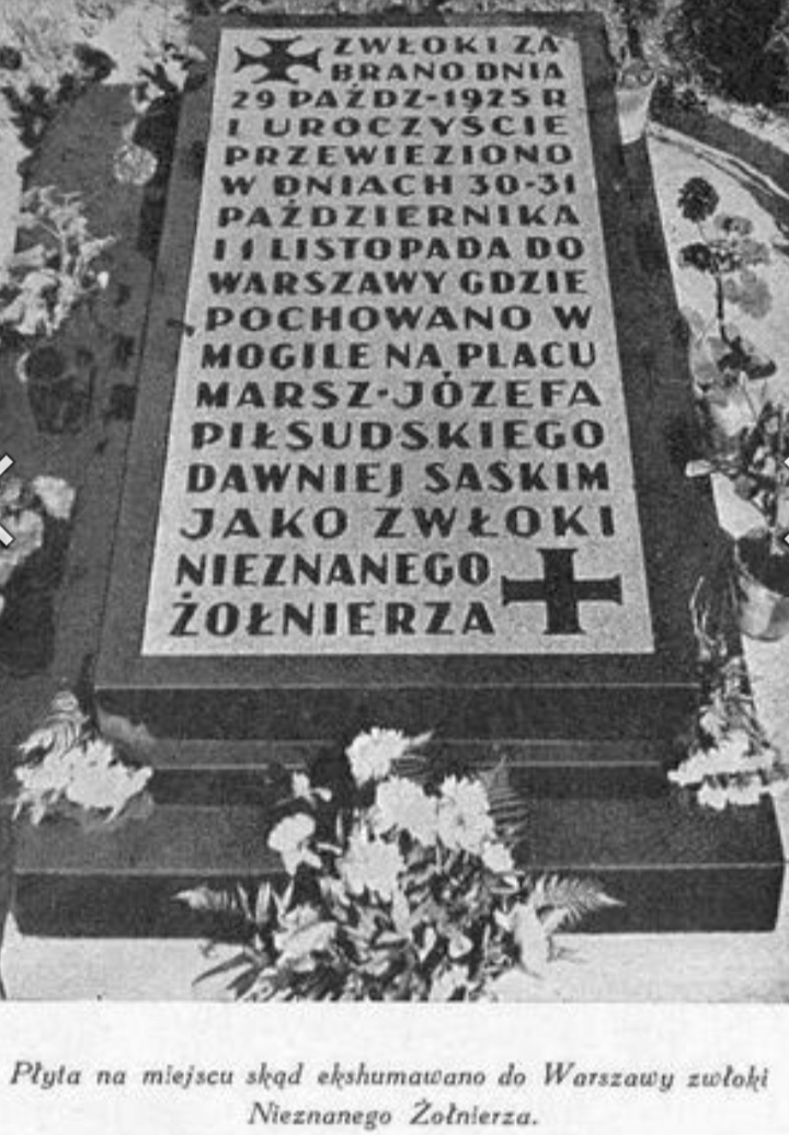 2 listopada 1925 r. trumnę umieszczono uroczyście pod kolumnadą pałacu Saskiego, w powstałym Grobie Nieznanego Żołnierza.