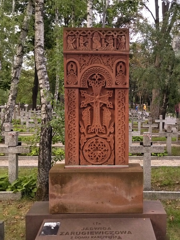 Ponieważ Pani Jadwiga miała rodowód ormiański, specjalnie na jej grób sprowadzono, zamówiony i wykonany w Armenii, chaczkar – wotywny krzyż ormiański wykonany z tufu (skały wulkanicznej).