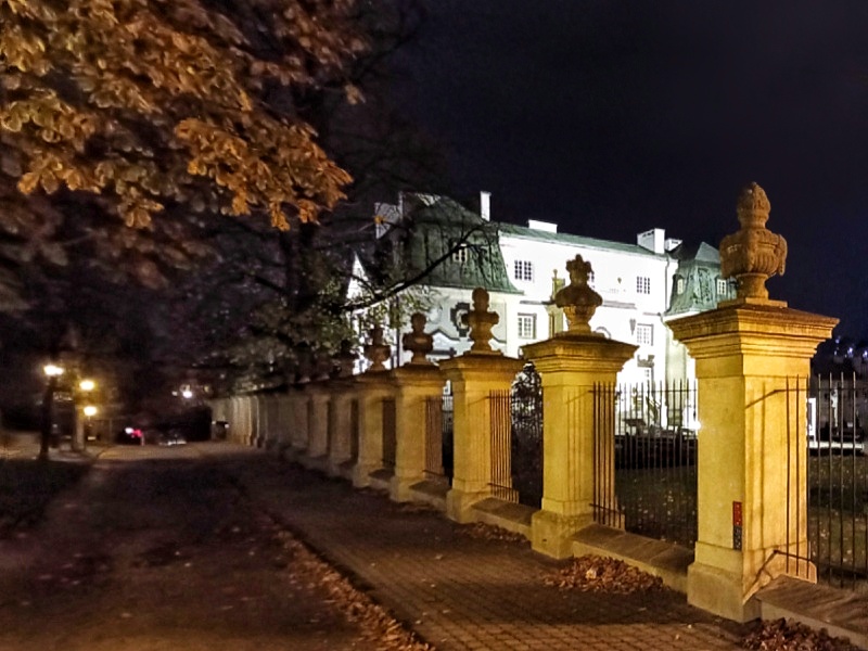 Na szczęście medycy są otwarci na kontakt z turystami, bo choć teren jest ogrodzony (otoczony stylowym ogrodzeniem, również wyremontowanym), to na teren niewielkiego ogrodu można wejść bez problemu. Przestrzenie na zewnątrz, jak też w pałacu, wykorzystywane są również do organizacji wystaw.
