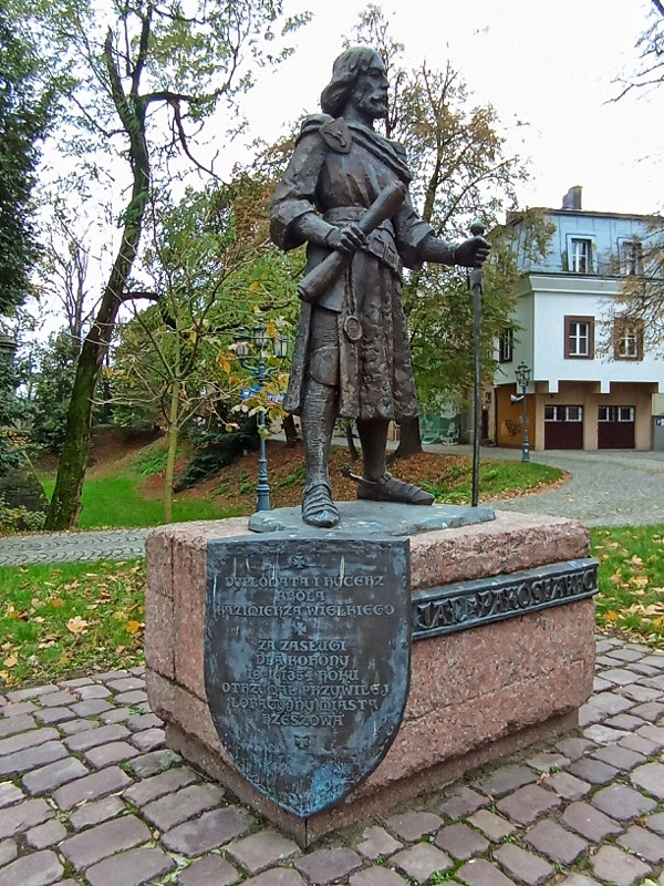 Aleję ciekawie i malowniczo zakończono zielonym skwerkiem z pomnikiem Jana Pakosławica, zacnego obywatela Rzeczypospolitej, dyplomaty i rycerza oraz „ojca miasta”. Jemu to bowiem król Kazimierz Wielki przyznał przywilej lokacyjny Rzeszowa. Pomnik stanął tu w 26 października 2014 roku, a zaprojektował go i wykonał znany rzeszowski rzeźbiarz Krzysztof Brzuzan. Fundatorem był Andrzej Bajor, prezes firmy Stalbudowa Kazex. Jak na dyplomatę i rycerza przystało, Pakosławic przepasany pasem rycerskim, w jednym ręku trzyma dokumenty, a w drugim miecz.