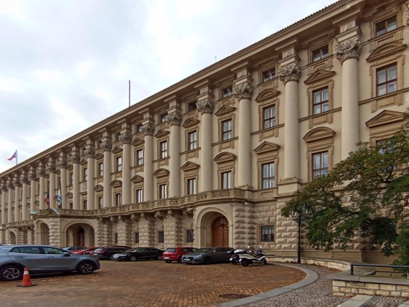 Istotny dla historii i współczesności Czech jest też ogromny gmach dawnego pałacu Czerninów na wprost kościoła. Obecnie mieści się tam Ministerstwo Spraw Zagranicznych Czech. Nie o nich jednak chce Wam opowiedzieć. Tych budowli nie da się nie zauważyć, gdyż od razu swymi rozmiarami przyciągają wzrok i uwagę. Zostały też już w wielu miejscach wielokrotnie opisane.