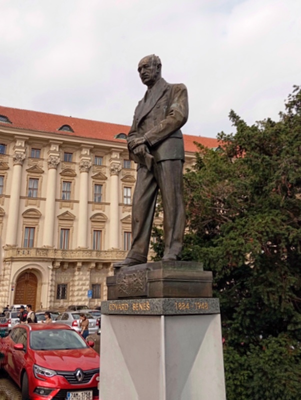 Otóż po prostu od 2000 roku miejsce na Placu Hradczańskim jest już zajęte, a z eleganckim panem, spoglądającym uważnie z postumentu na Praski Hrad, Beneš nijak nie mógł konkurować.😉