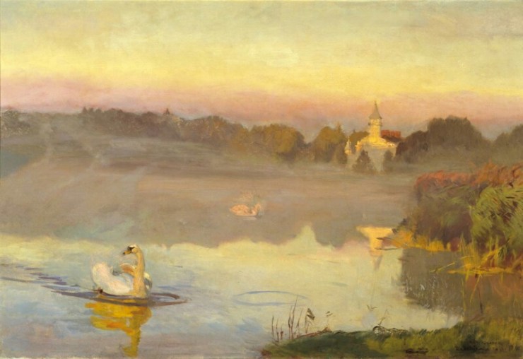 Dworek Mateusza Chełmońskiego nie jest dostępny do zwiedzania, ale można na niego zerknąć znad stawu.