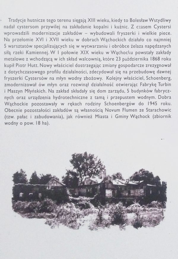 Funkcjonujące do dziś tama i zbiornik wodny w Wąchocku – jak już wspomniałam – to także pozostałości po dawnych zakładach metalurgicznych i młynie.