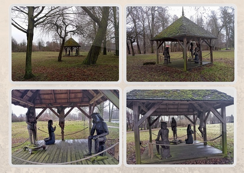 Obecnie to miejsce upamiętnia drewniana wiata z rzeźbami nad brzegiem Pisi. Rzeźby pochodzą ze spektaklu Kazimierza Dejmka „Gra o narodzeniu i męce” zrealizowanego w grudniu 1982 roku w Teatrze Polskim w Warszawie.