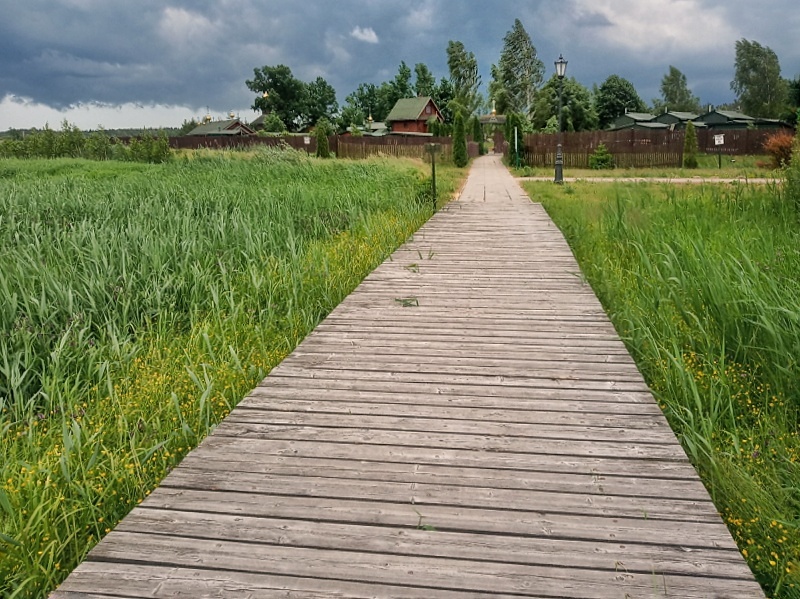Gdy jednak za czasów Ojca Gabriela jesienią i wiosną Narew przybierała i rozlewała się szeroko, jedyne dojście prowadziło 800-metrową kładką. Przez wiele lat nie było tu elektryczności, bieżącej wody i innych dobrodziejstw cywilizacji. Teraz nawet na kładce są latarnie, a poziom wód gruntowych znacznie się obniżył.
