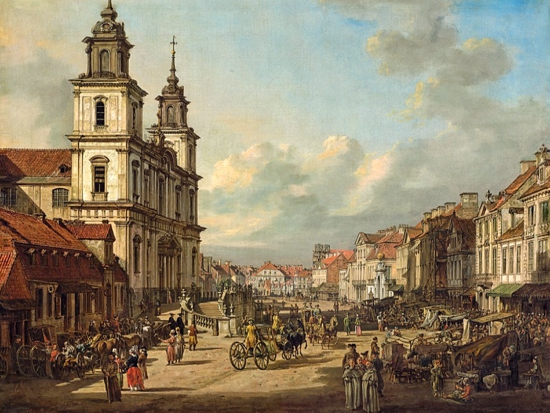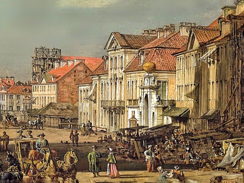 W tym samym miejscu znajdowała się brama, którą około 1732 polecił zbudować August II Mocny. Zwieńczona była złoconym globem, a zaprojektowana została przez Jana Zygmunta Deybla i Joachima Daniela Jaucha. Stała przy ówczesnym pałacu Poniatowskich, który w kolejnych wiekach zmienił właścicieli i został rozebrany, a na jego miejscu pojawił się pałac Uruskich, znany nam obecnie. XVIII-wieczną bramę utrwalili na swoich obrazach m. in. Bernardo Bellotto i Zygmunt Vogel.
