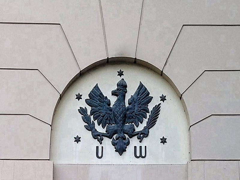 Nad bramą, nad napisem UNIWERSYTET, w zwieńczeniu misternie kutych wrót, umieszczony jest orzeł w koronie. Ten orzeł też nie od razu się tu pojawił. Początkowo, brama zwieńczona była stylizowaną litera ‚A’, symbolizującą cara Aleksandra I, jako że w roku 1911 Warszawa znajdowała się jeszcze pod zaborem rosyjskim.